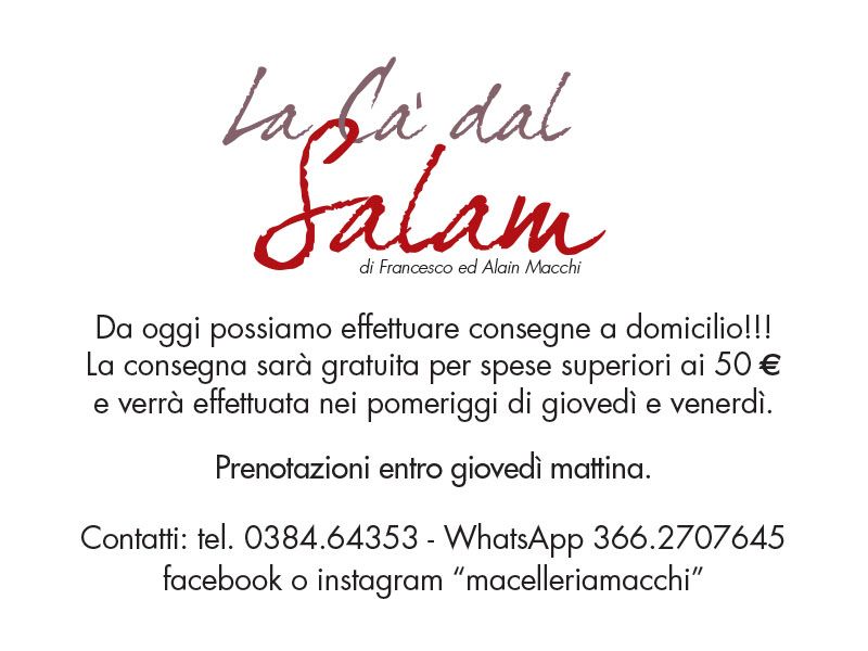 Proponiamo prelibatezze tipiche della nostra regione, gli antichi sapori di una volta... Sanguinaccio, Trippa, Ciccioli: diversi tagli dell’animale, cotti, pressati e aromatizzate con alloro, sale, pepe. Produzione stagionale, ideale se affettato sottile e consumati come uno sfizioso stuzzichino; Ciccioli d’oca - Prodotto tipico lomellino, consumati a temperatura ambiente o intiepiditi al forno per aperitivo, consumati caldi come secondo accompagnati da una fumante polenta o come uno sfizioso ingrediente per focacce e panini e stuzzichini; Salam dla duja - tipico delle zone del vercellese e del novarese - è un salame conservato sotto strutto che permette di mantenerlo morbido per periodi anche di un anno. Il salame d'la duja è un ingrediente di una ricetta famosa della cucina piemontese, la panissa piatto tipico del vercellese. Ma si può anche consumare crudo.